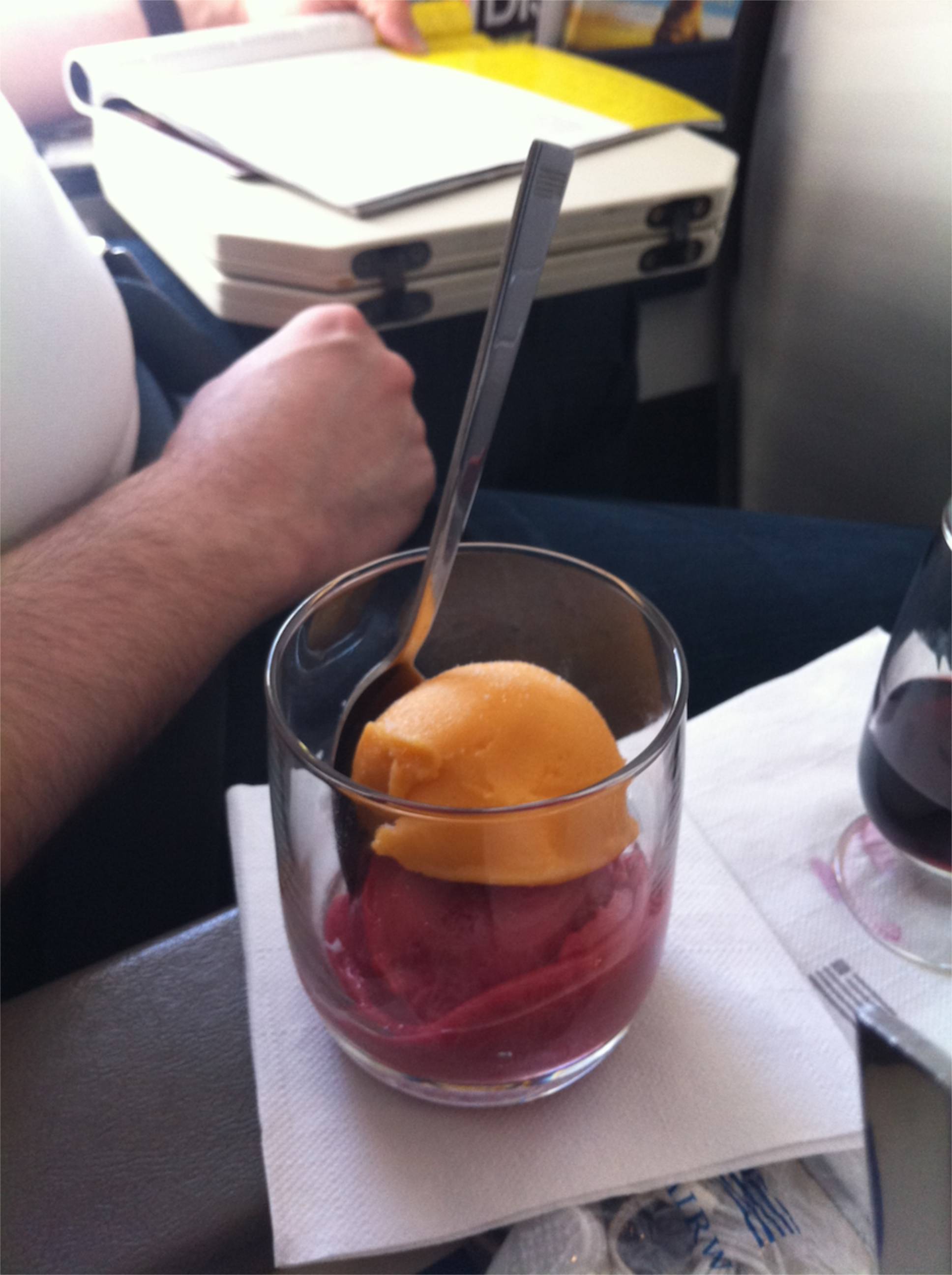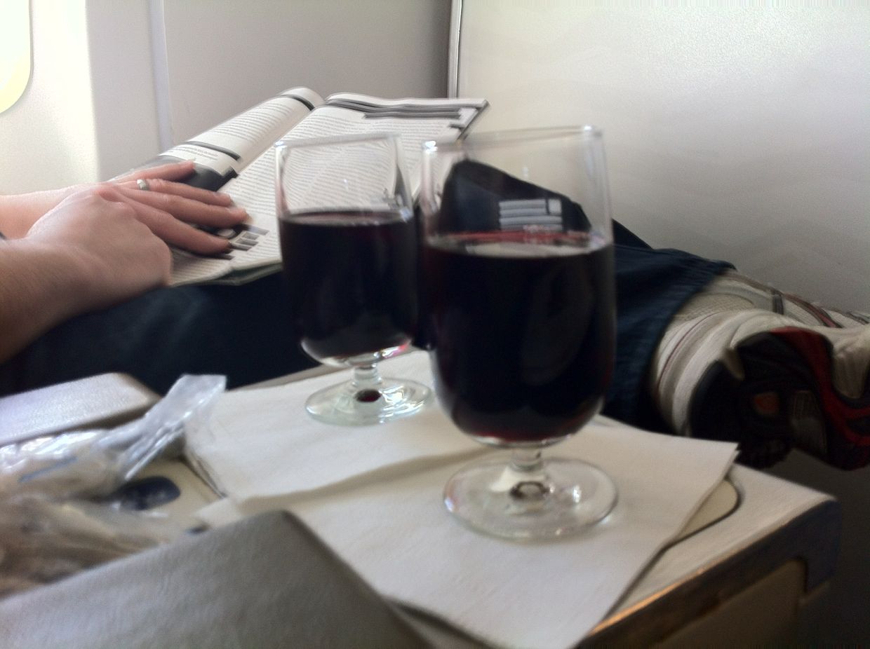 Sipping wine in first class