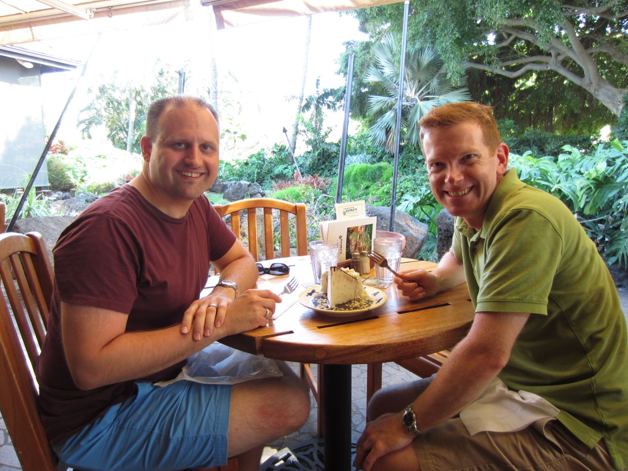 Breakfast with macadamia nut pancakes and Kona coffee