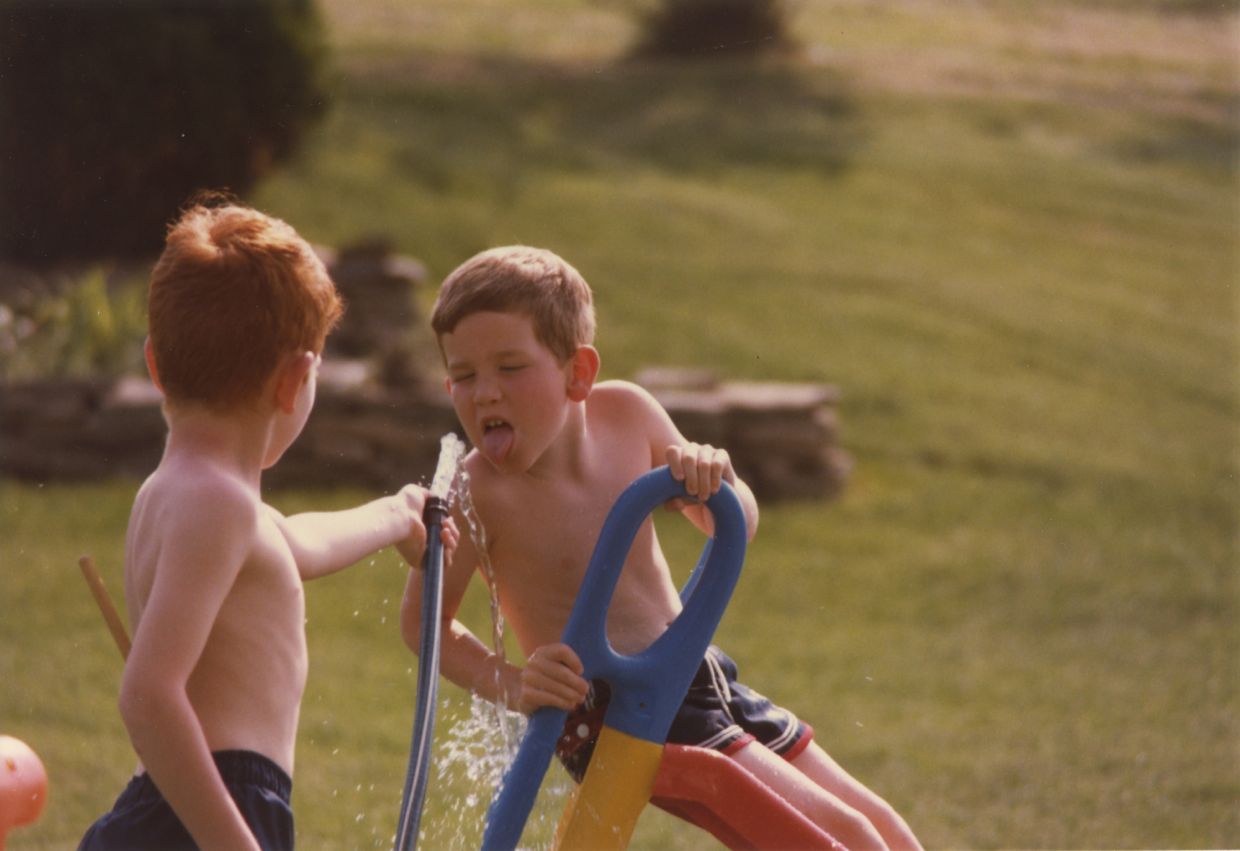 Rob jumps the sprinkler