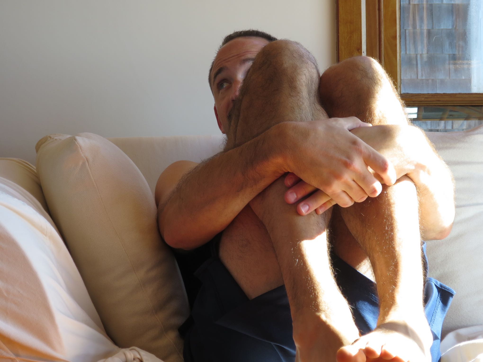 Jamie, triumphant after repairing the screen door
