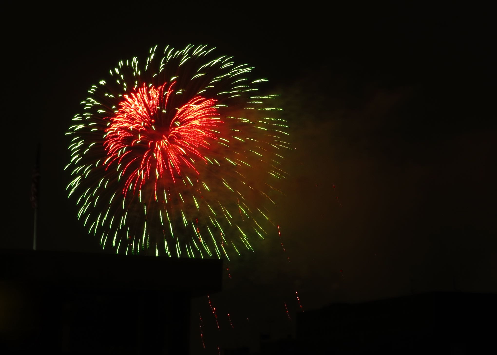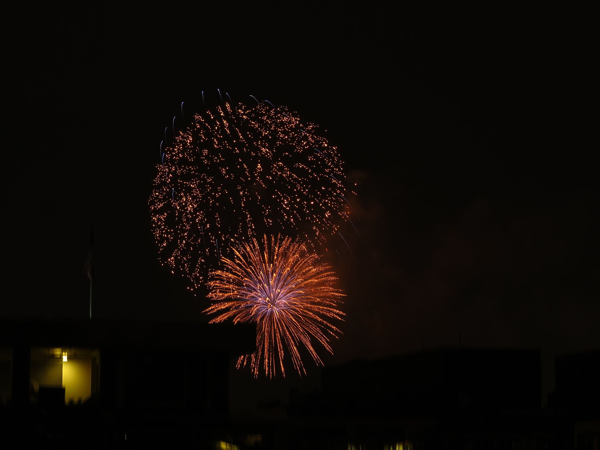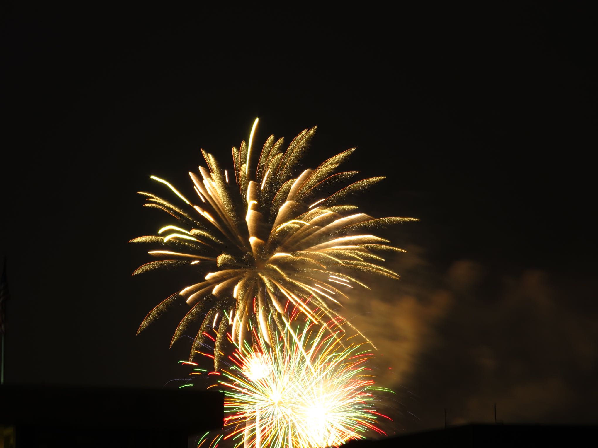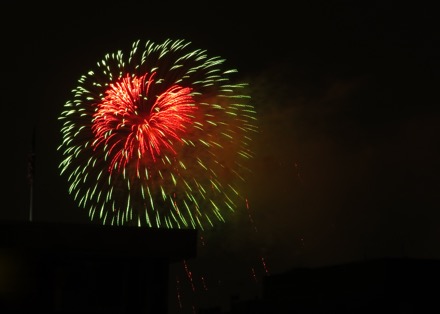 This year, Bill and I watched the Capital Fourth fireworks from the 9th floor deck of the National Geographic building on 17th Street. It was a quiet evening with just two other fireworks fans. I used the 'fireworks' mode on my camera, and what do you know, it really works!