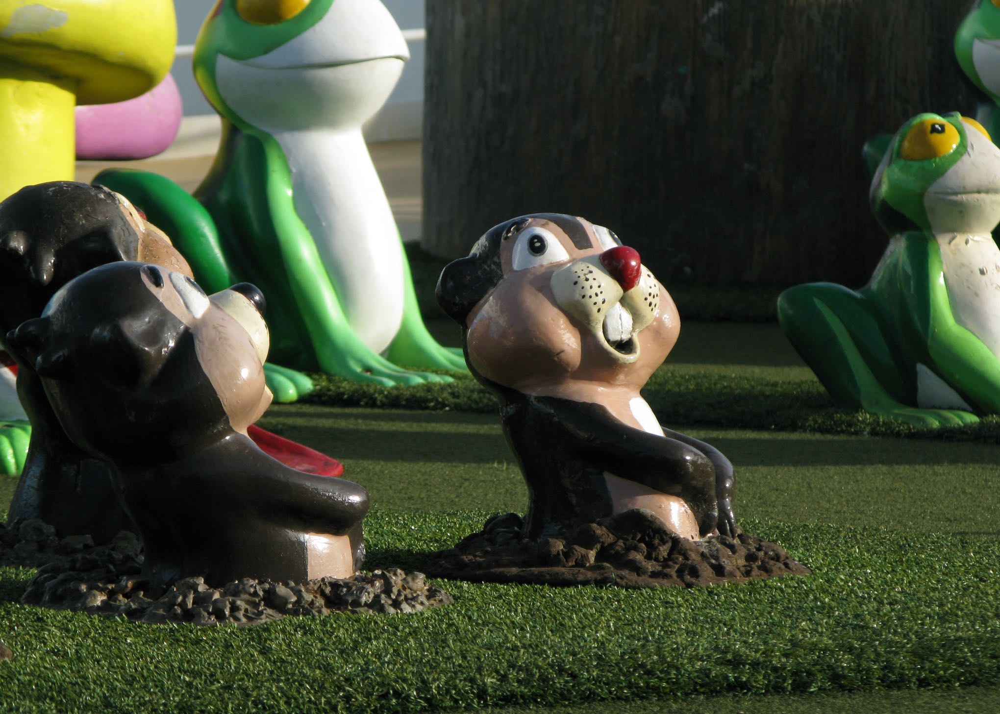 Minigolf characters watching the eclipse without their glasses