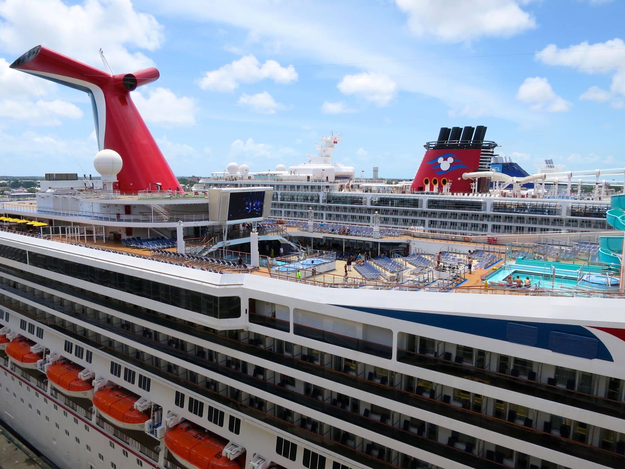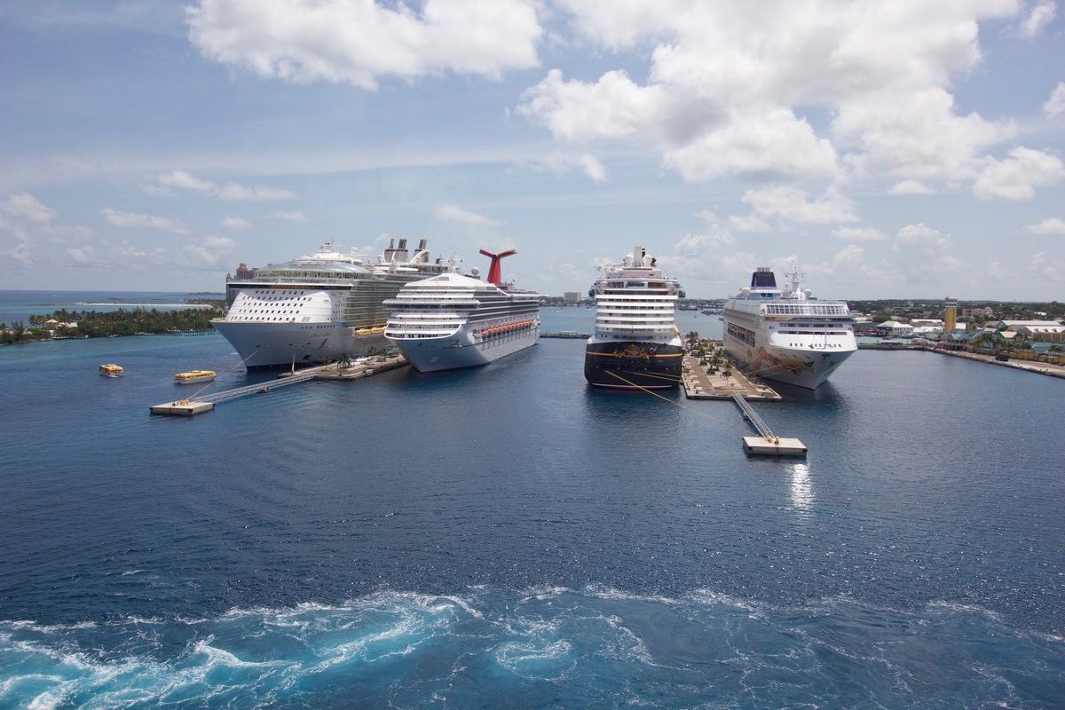 Photo from the Majesty of the Seas arriving in Nassau: Oasis of the Seas (ours), Carnival Victory, Disney, Norwegian Cruise Lines