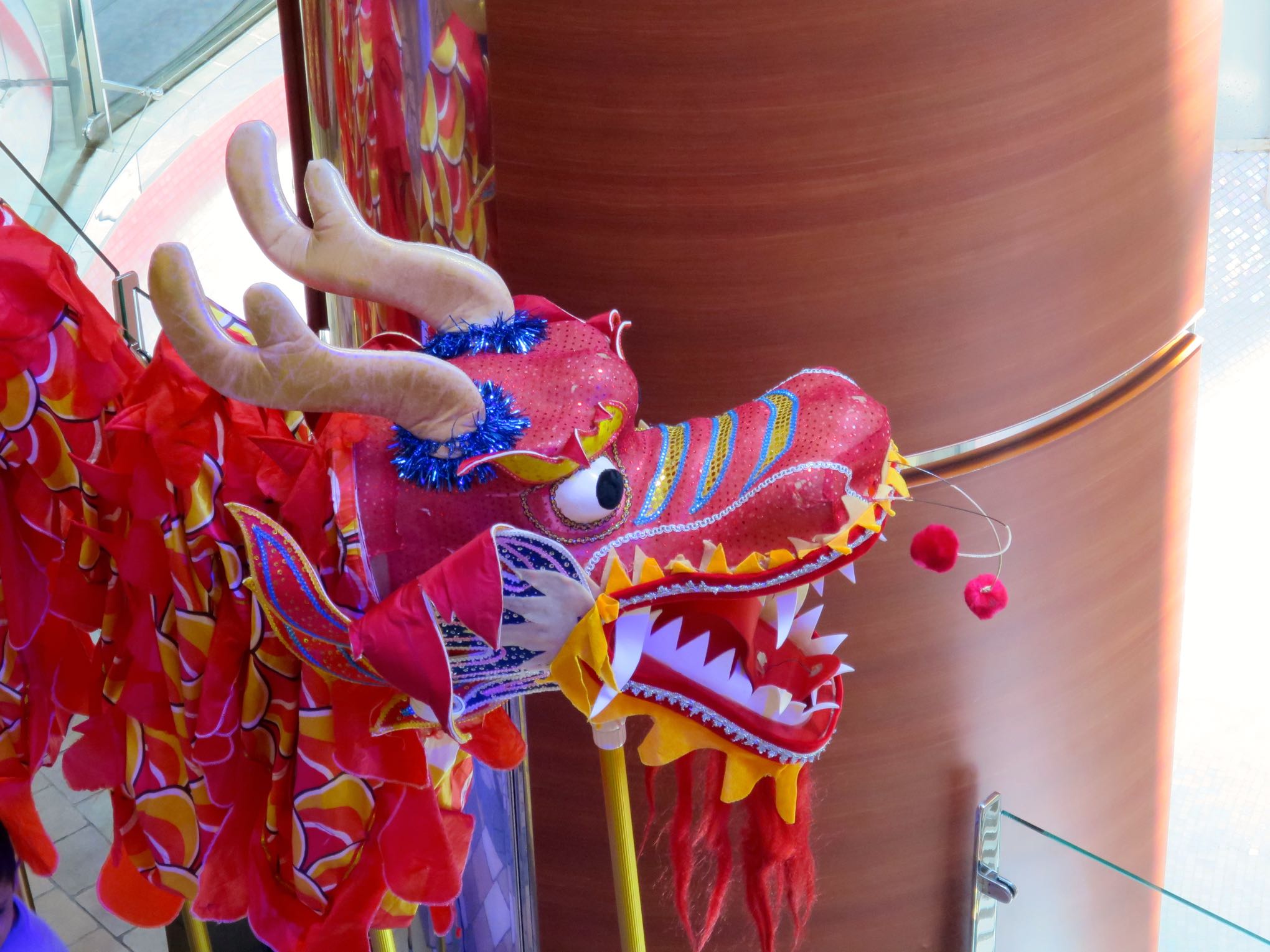 Dragon peeking around a pillar