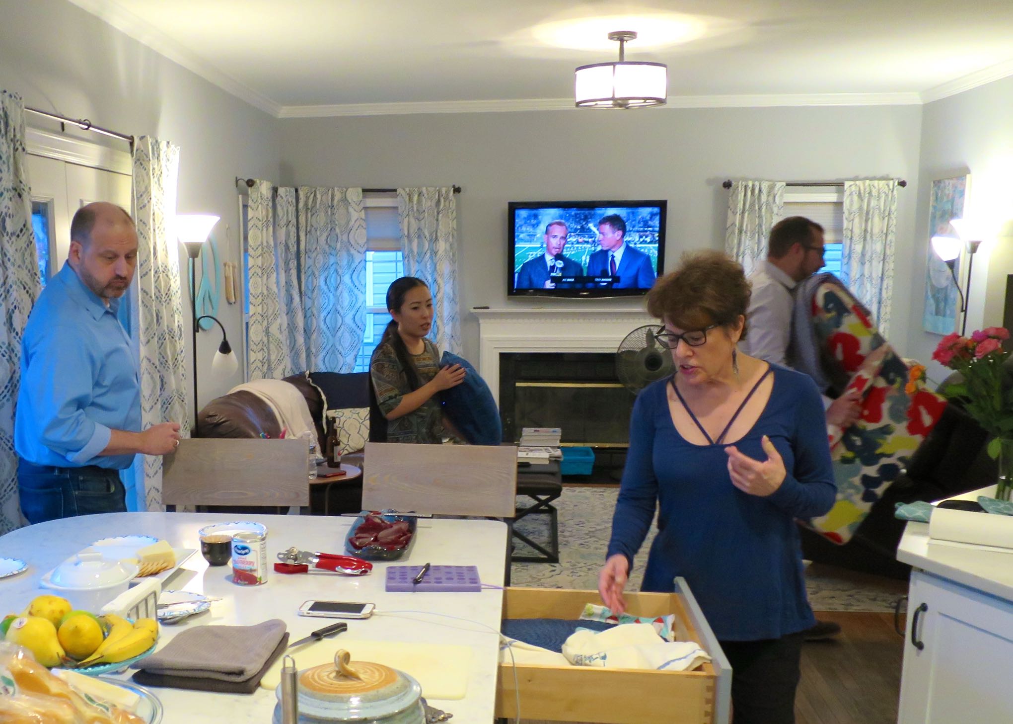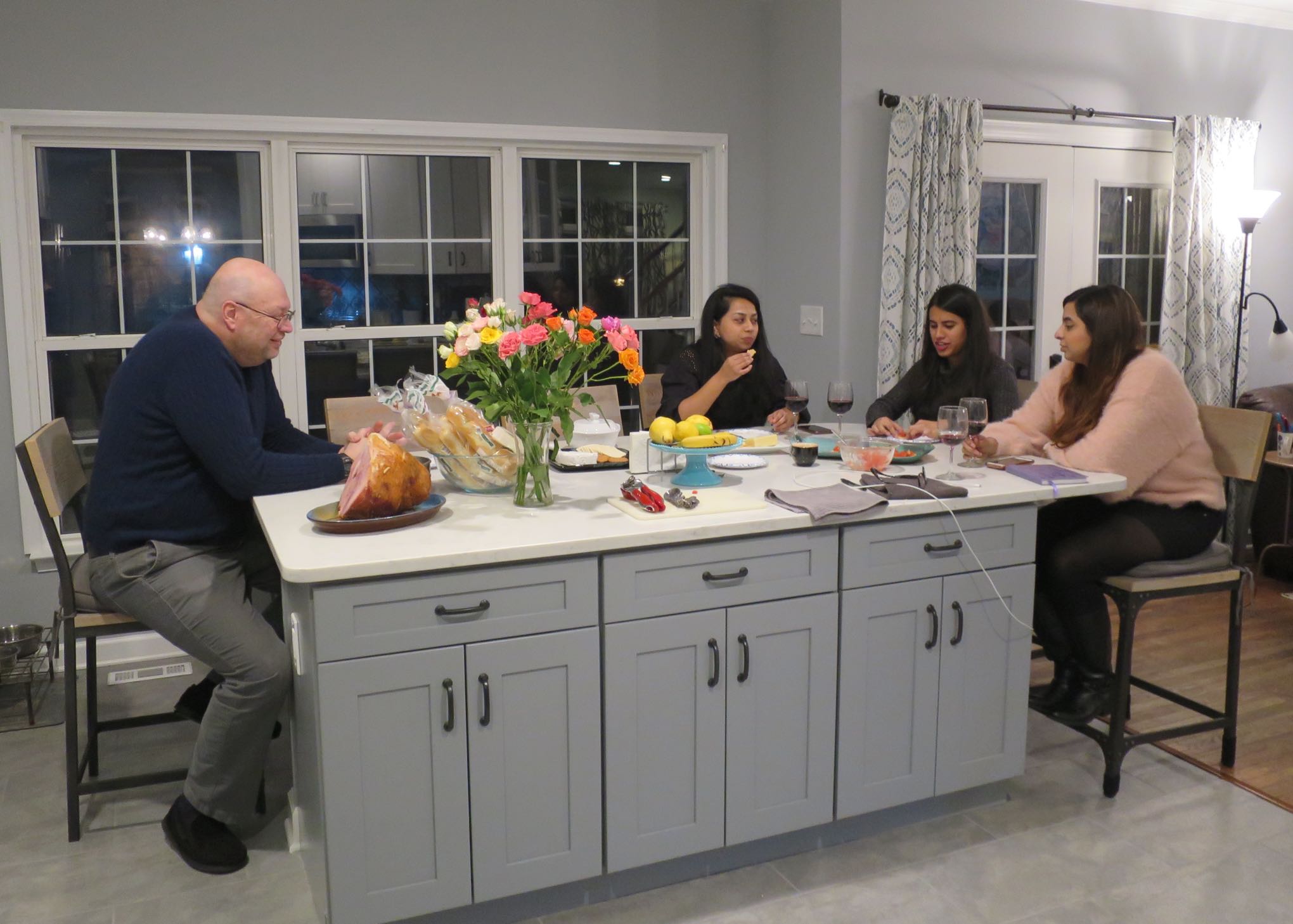 The new island has seating for all