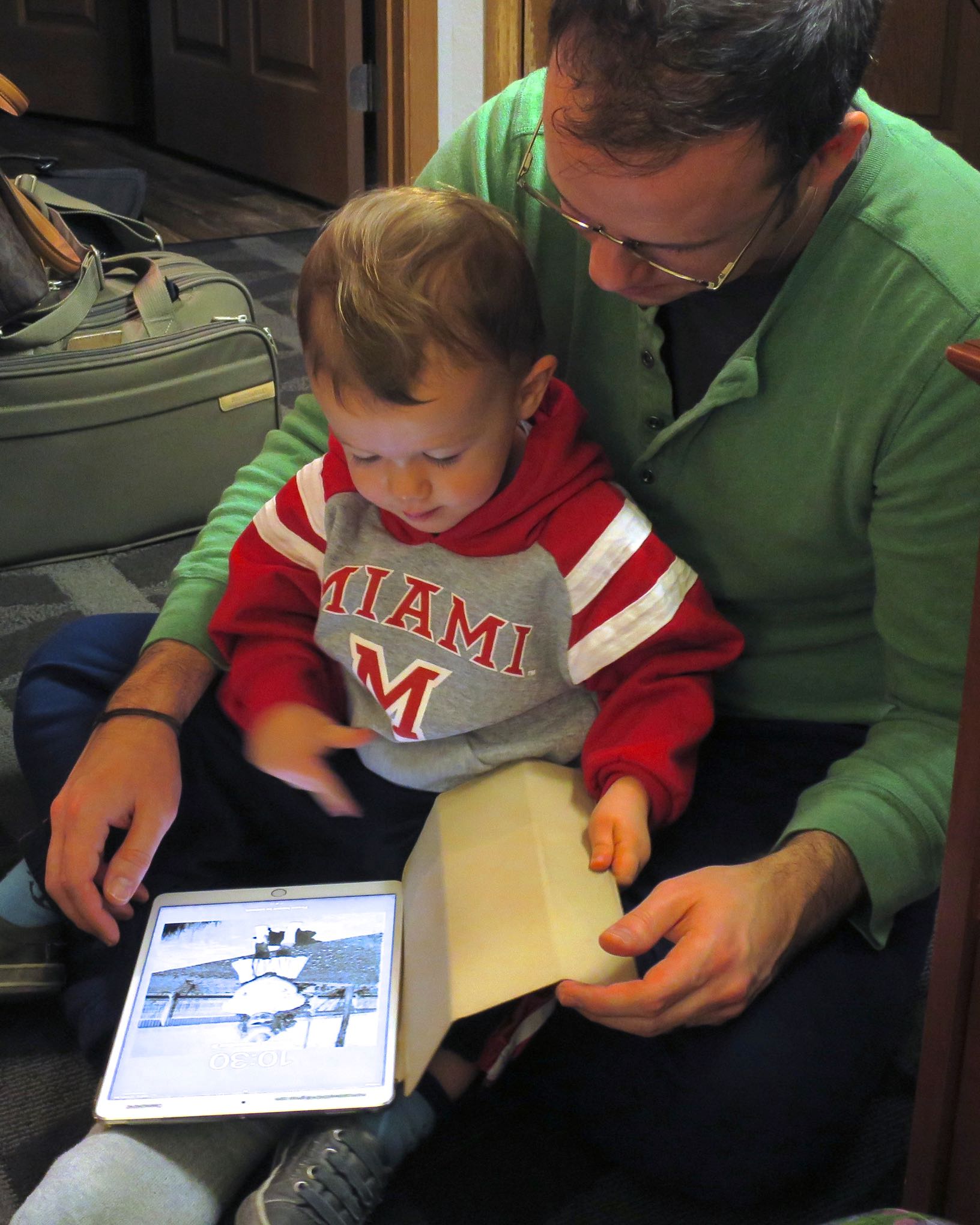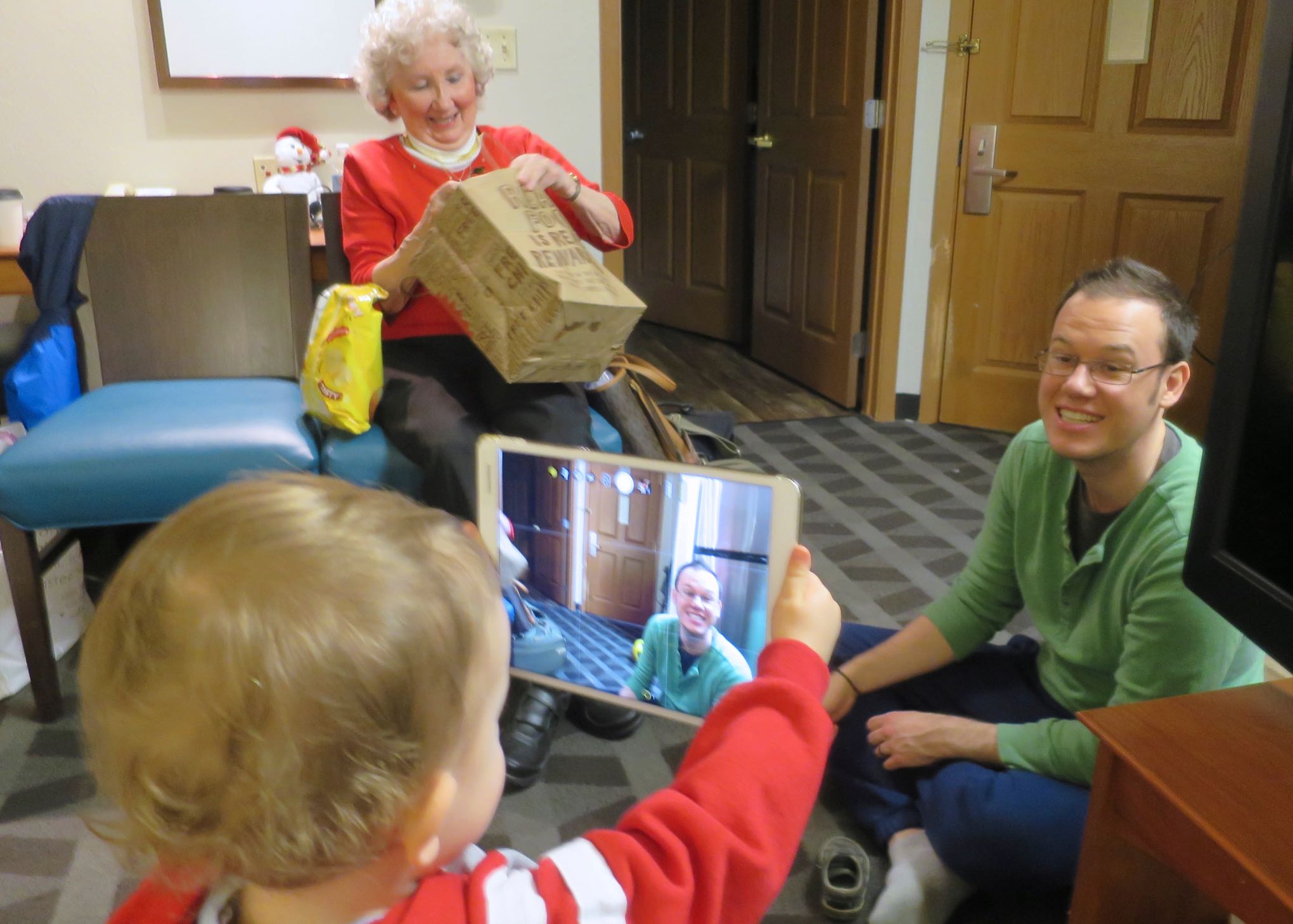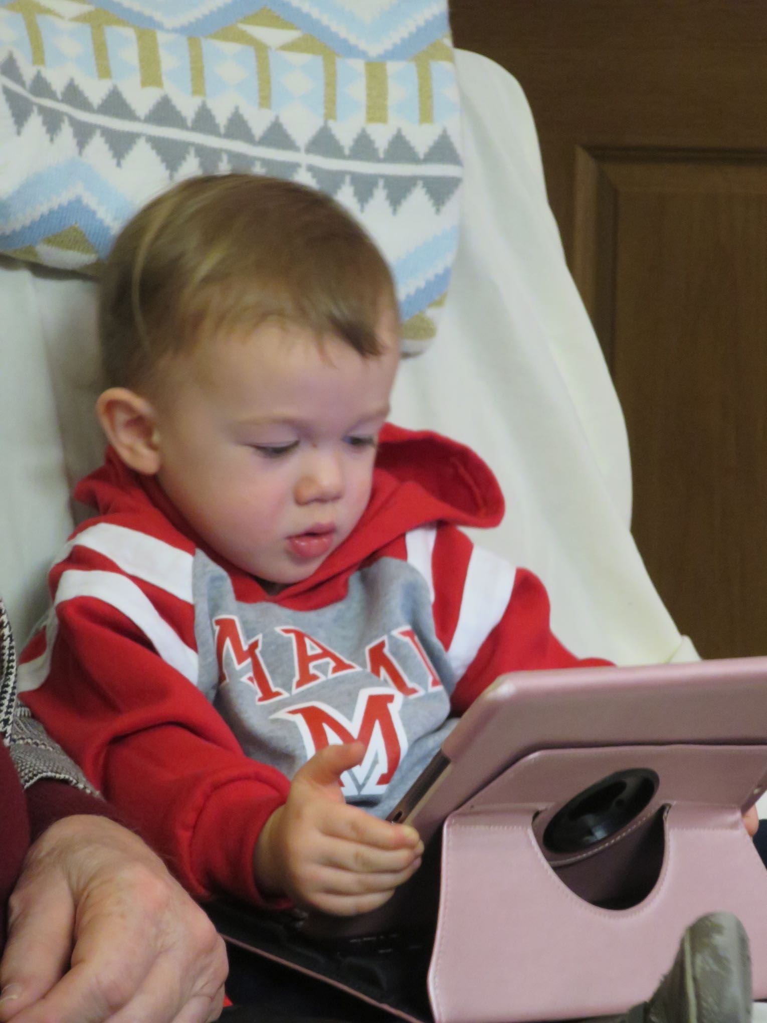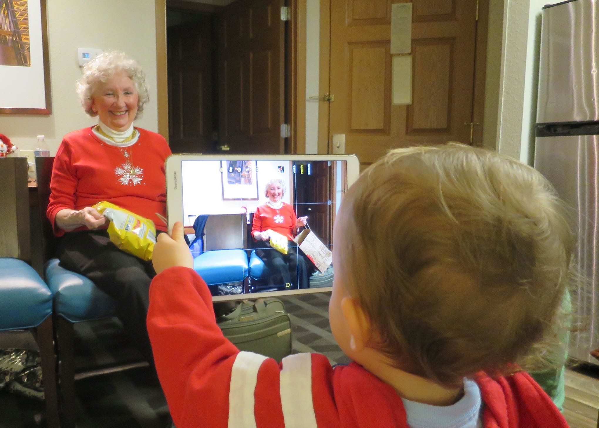 Remy reviewing a photo of little Grandma
