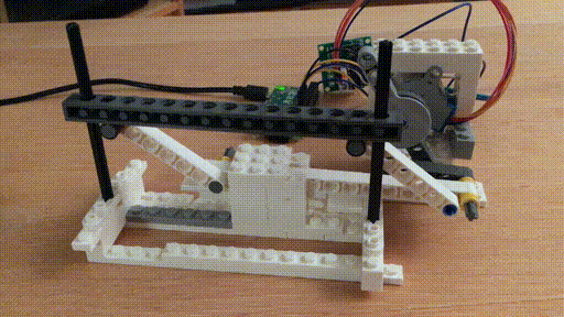My first attempt used a stepper motor and Legos. You can see the whole rig torque as the arm goes around.