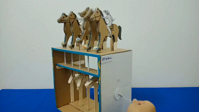 Then I found this on YouTube. A kid built a cardboard horse run with a simple cam and crank mechanism.