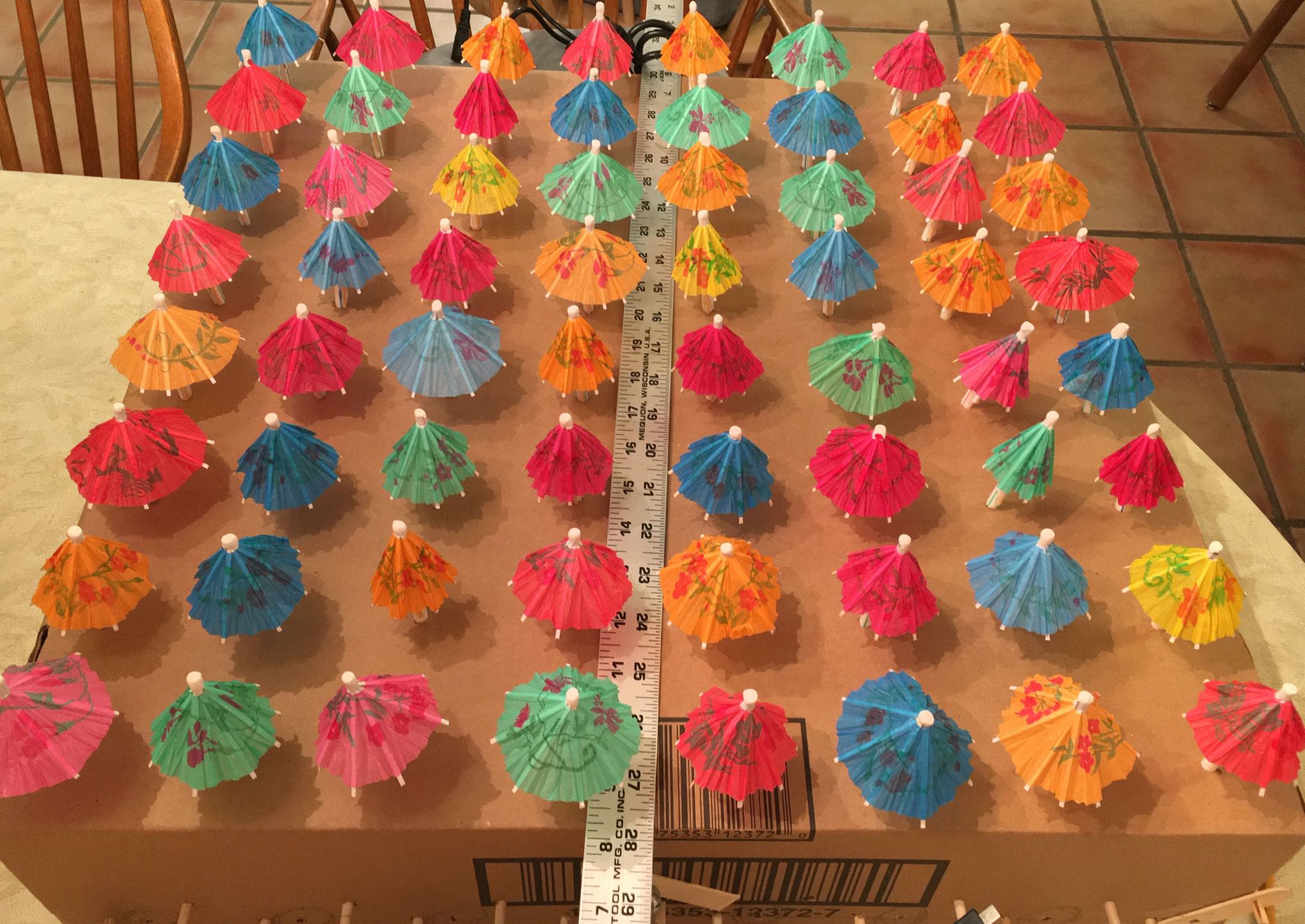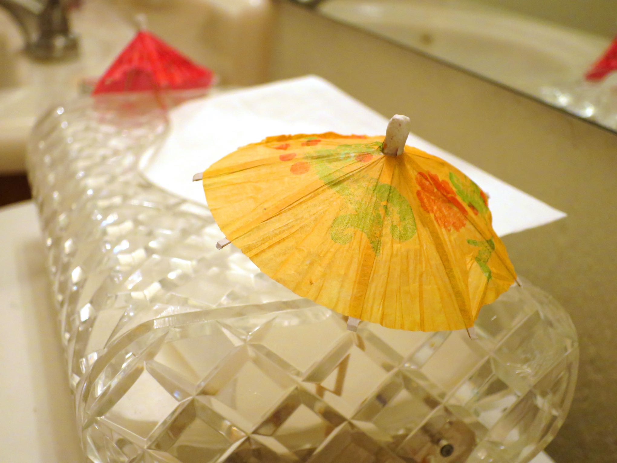 Years ago, I had an idea. After a lovely dinner at the Lotus Garden, I would gather up the paper umbrellas from the cocktails and hide them around May's house.