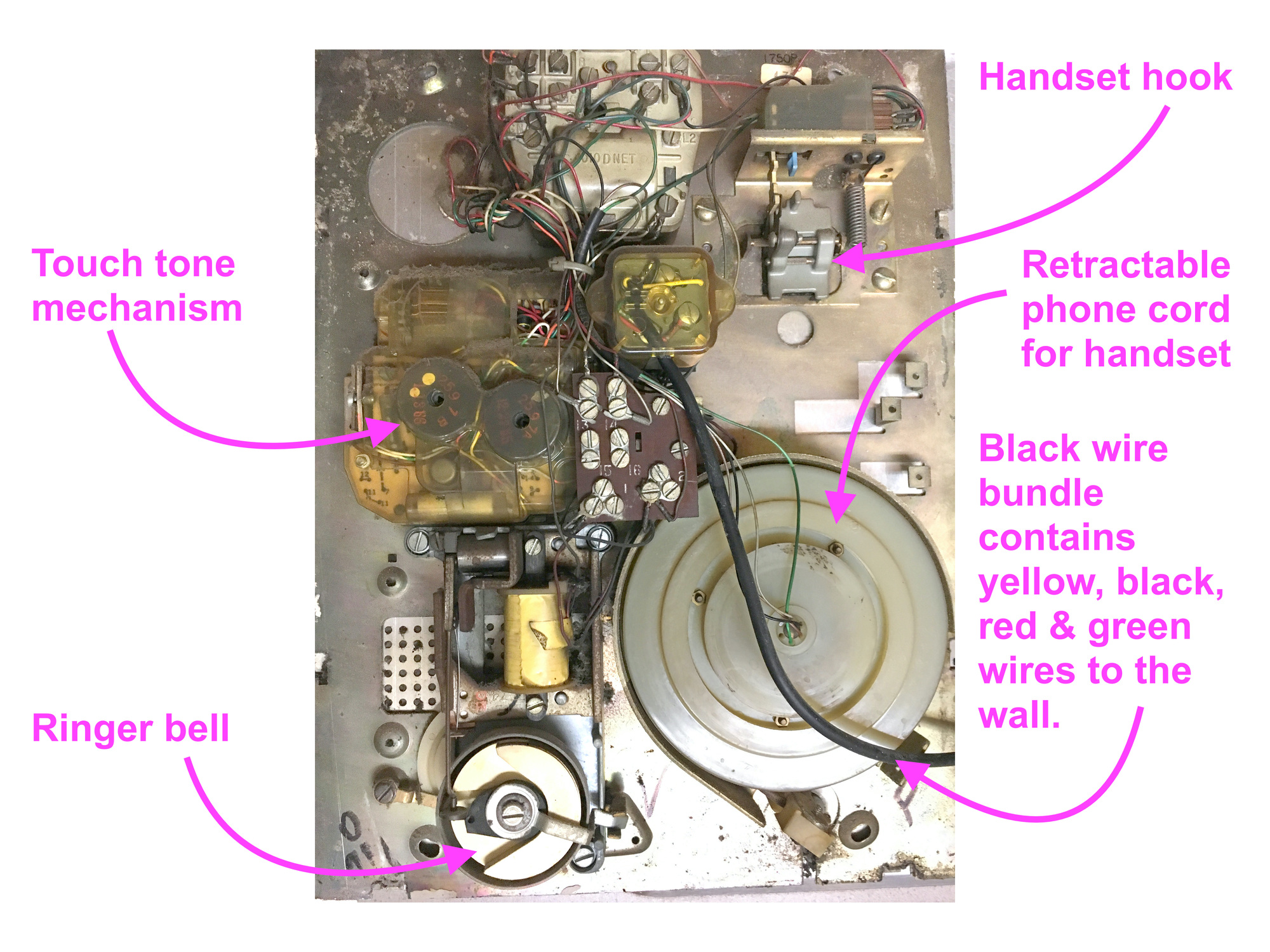 I found some instructions online for converting an old phone into a wireless by taking apart a wireless handset and tying it into the mechanical parts of the vintage phone.