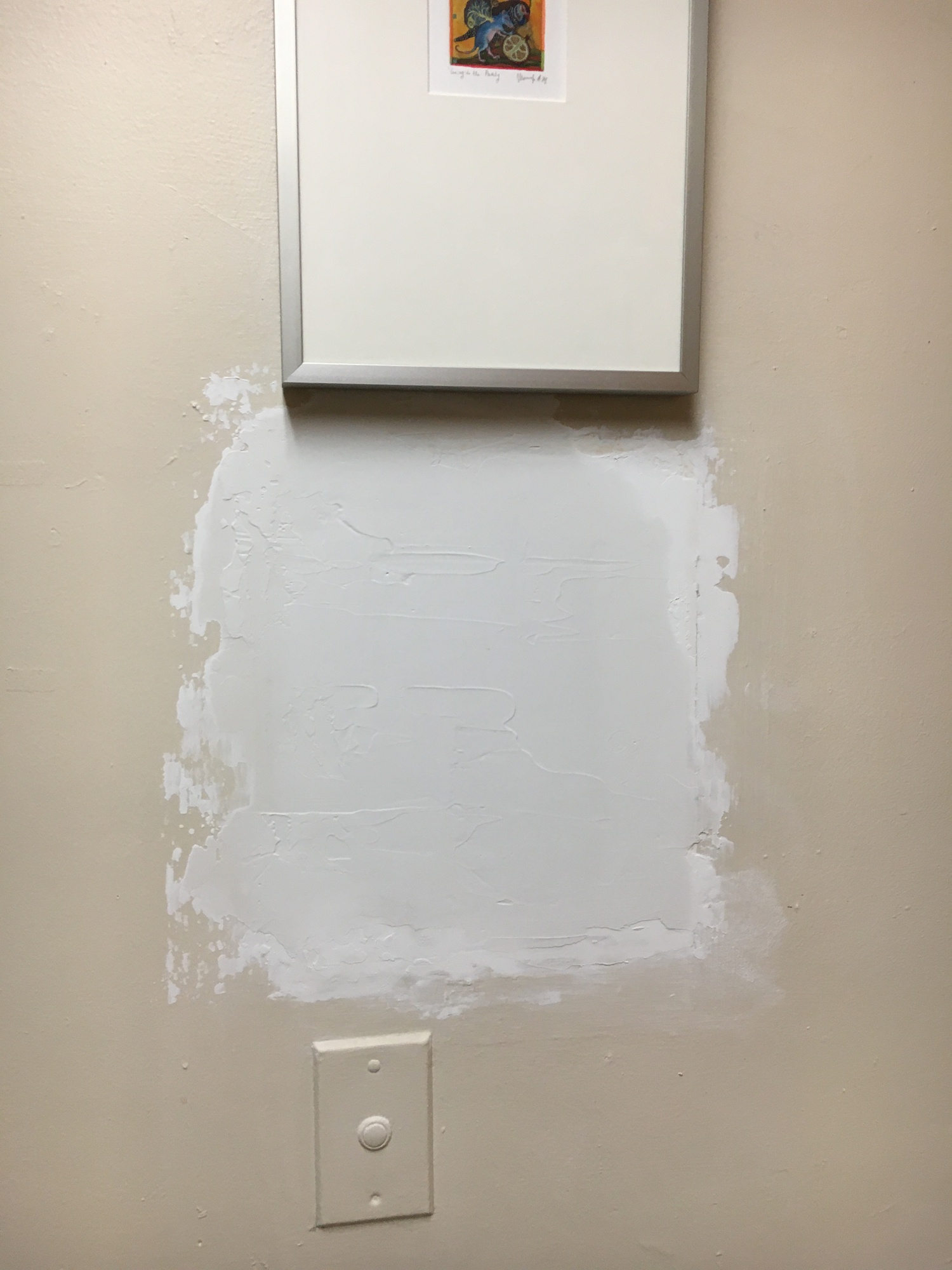 I tried painting just the patch, but as good as paint matching technology is, it just doesn't match exactly. So the next day, I taped everything off so I could paint the whole wall.