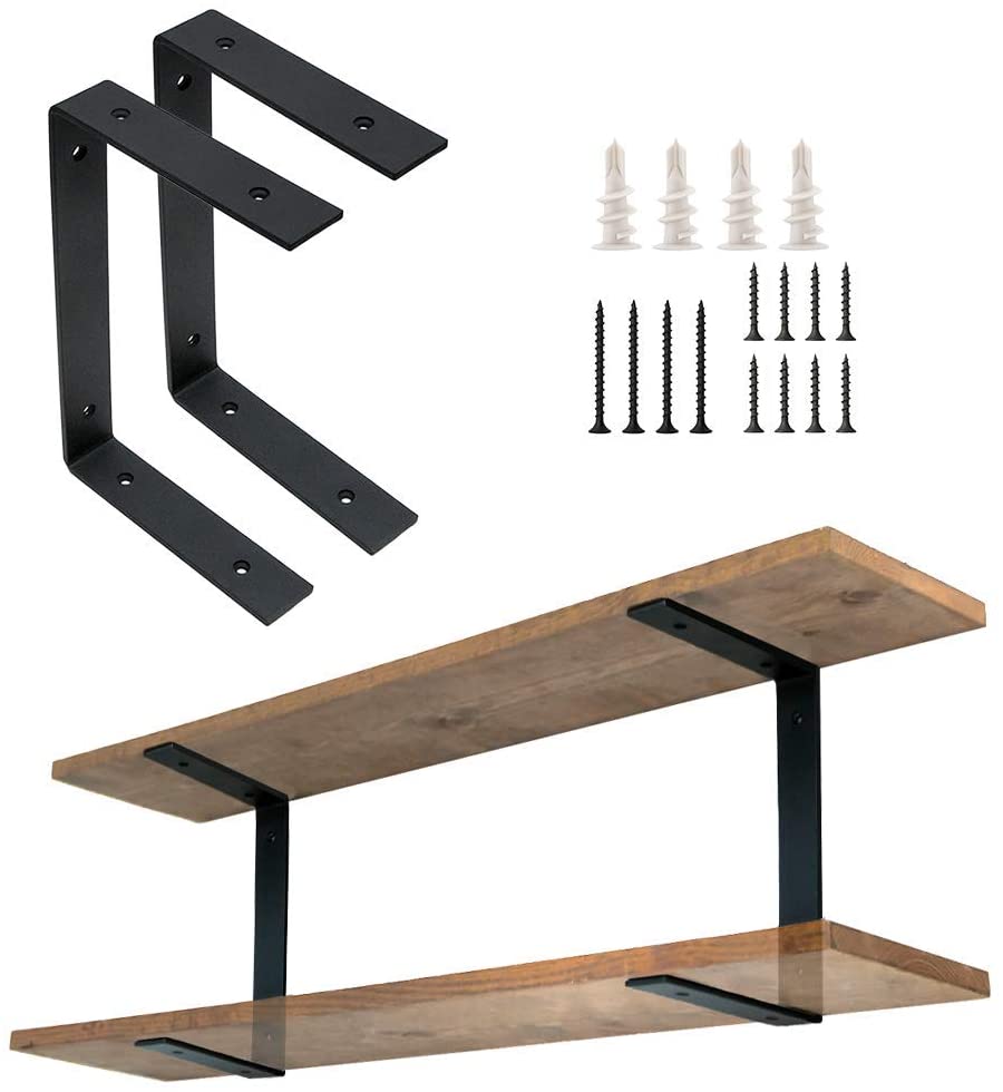 Set of two 5mm thick black steel double L floating shelf brackets. 7" x 11" x 1.5" and able to support 75lbs. 4.5 lbs. |