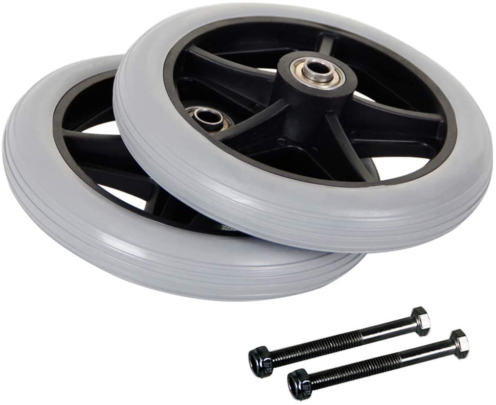 Solid Rubber 6 Inch Wheels. Mounting hole is 8mm, set of 2. This determines axle size. 1.8 lbs for both wheels |