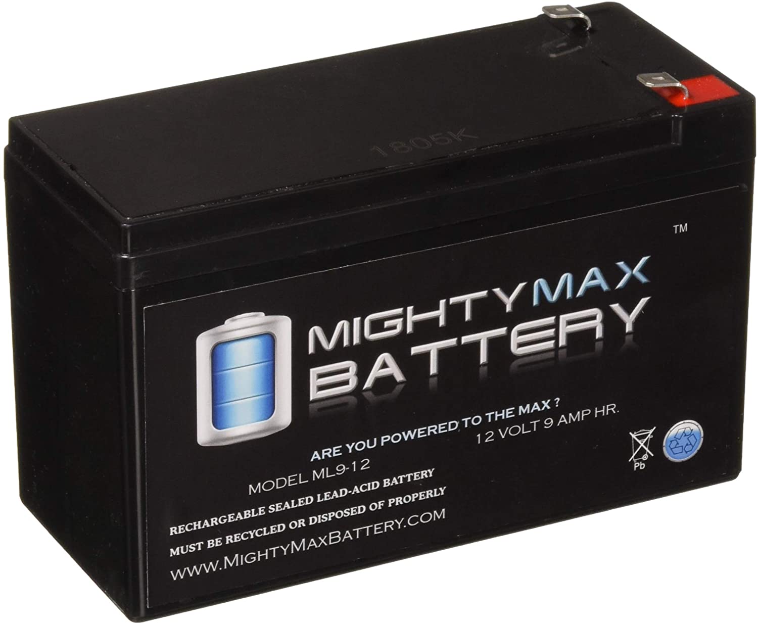 MightyMax, 12V rechargable SLA (AGM) battery, 9Ah. The Sabertooth motor driver board requires battery power input, not AC wall power. |