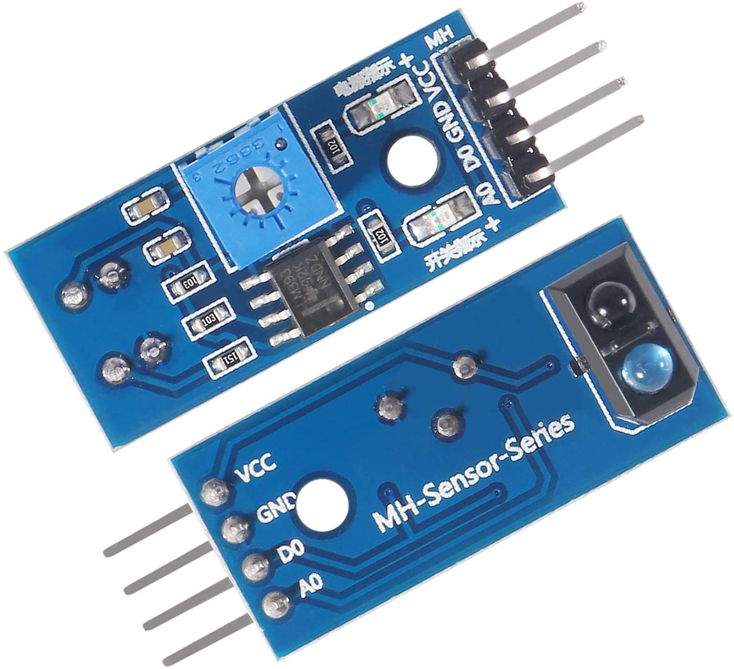 IR Infrared Obstacle Avoidance Sensor. Cliff sensors so we don't fall down the stairs, for 2-30cm. |