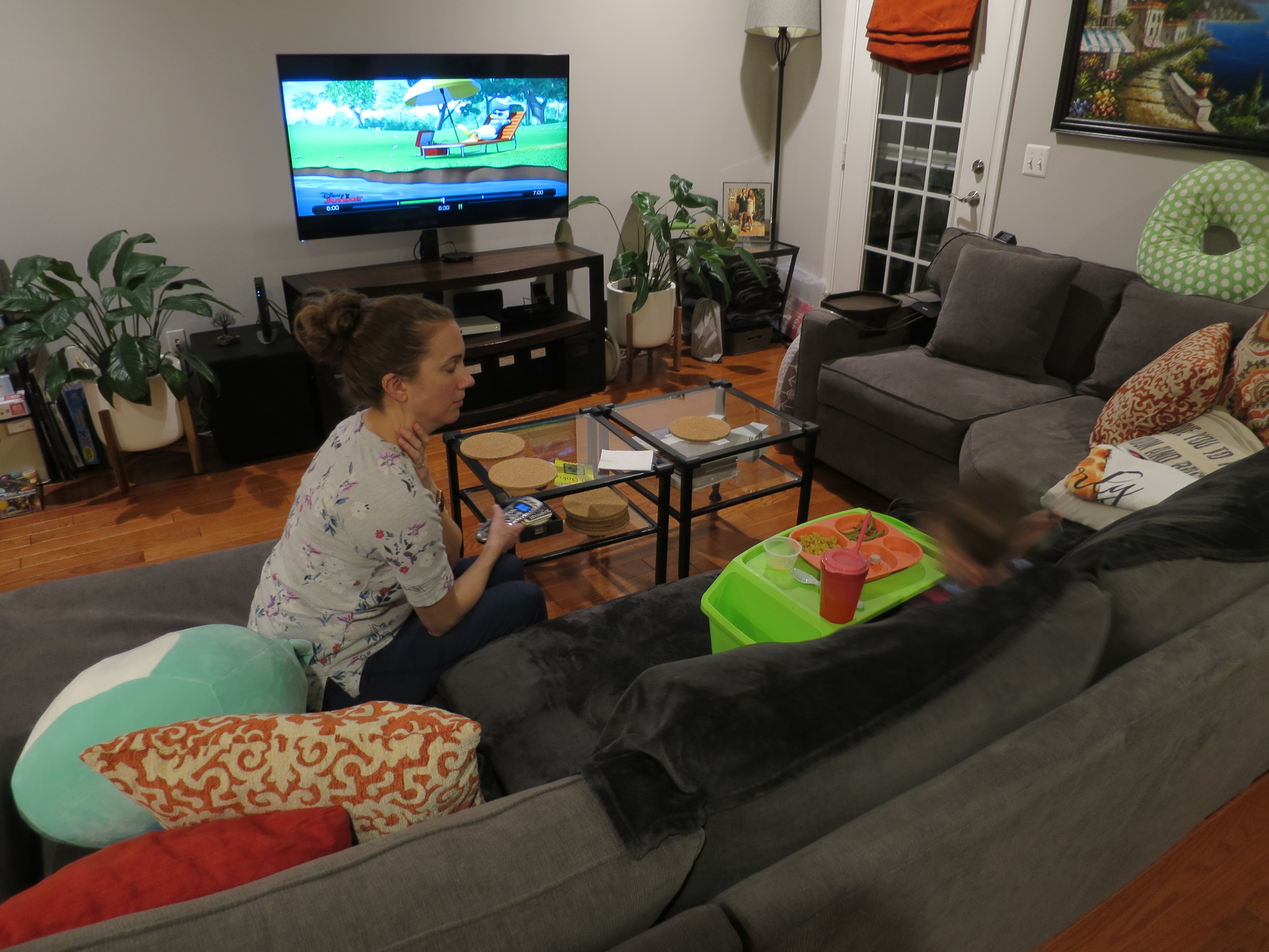 You can almost see Remy's head in the blur next to the tray of food. When Patti didn't hear eating, she would pause the TV, and a little voice would cry out, "I love you Mommy!". "I love you too, now keep eating." Patti replied.