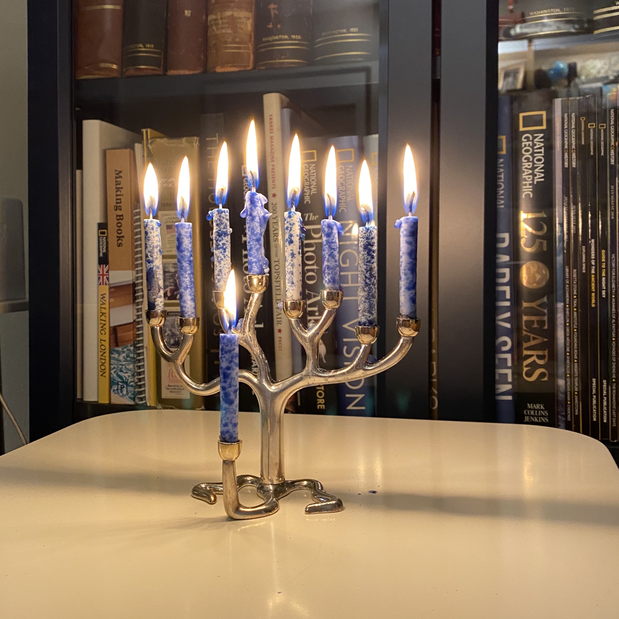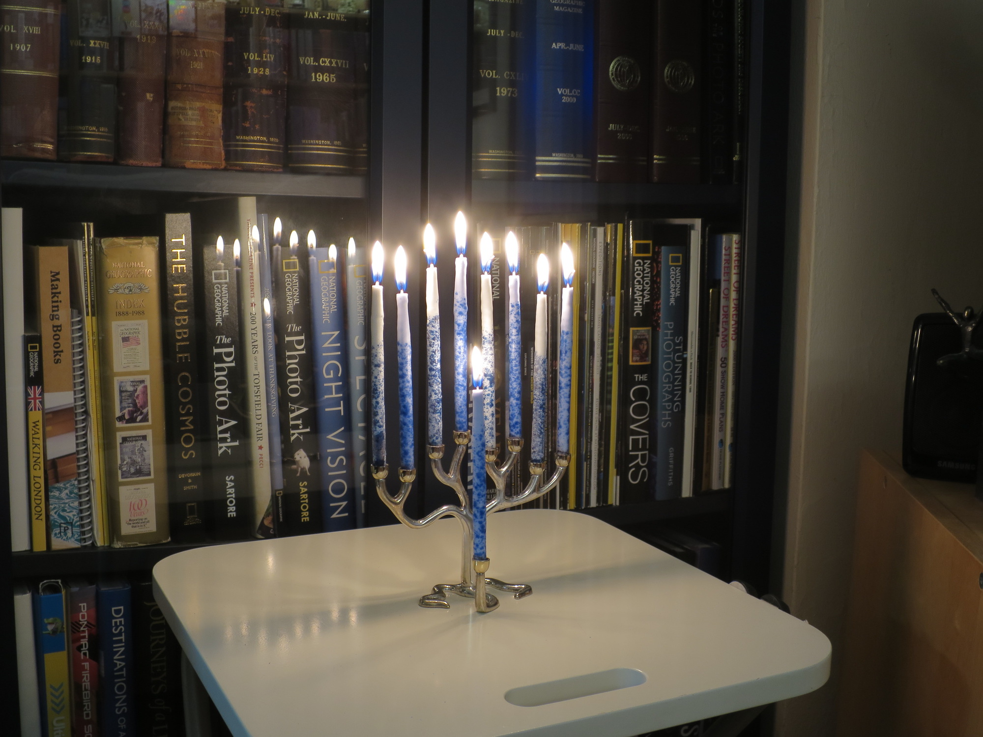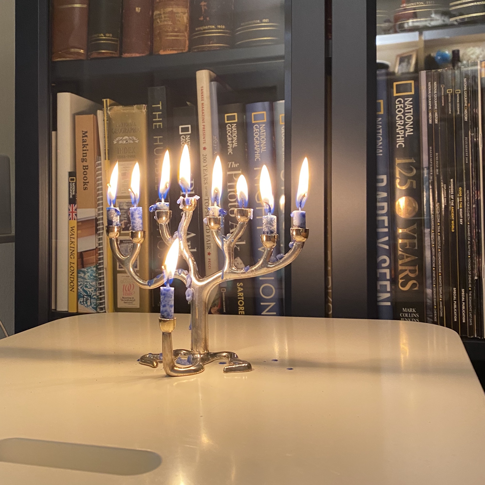 Menorah on the last night of Hanukkah, going...
