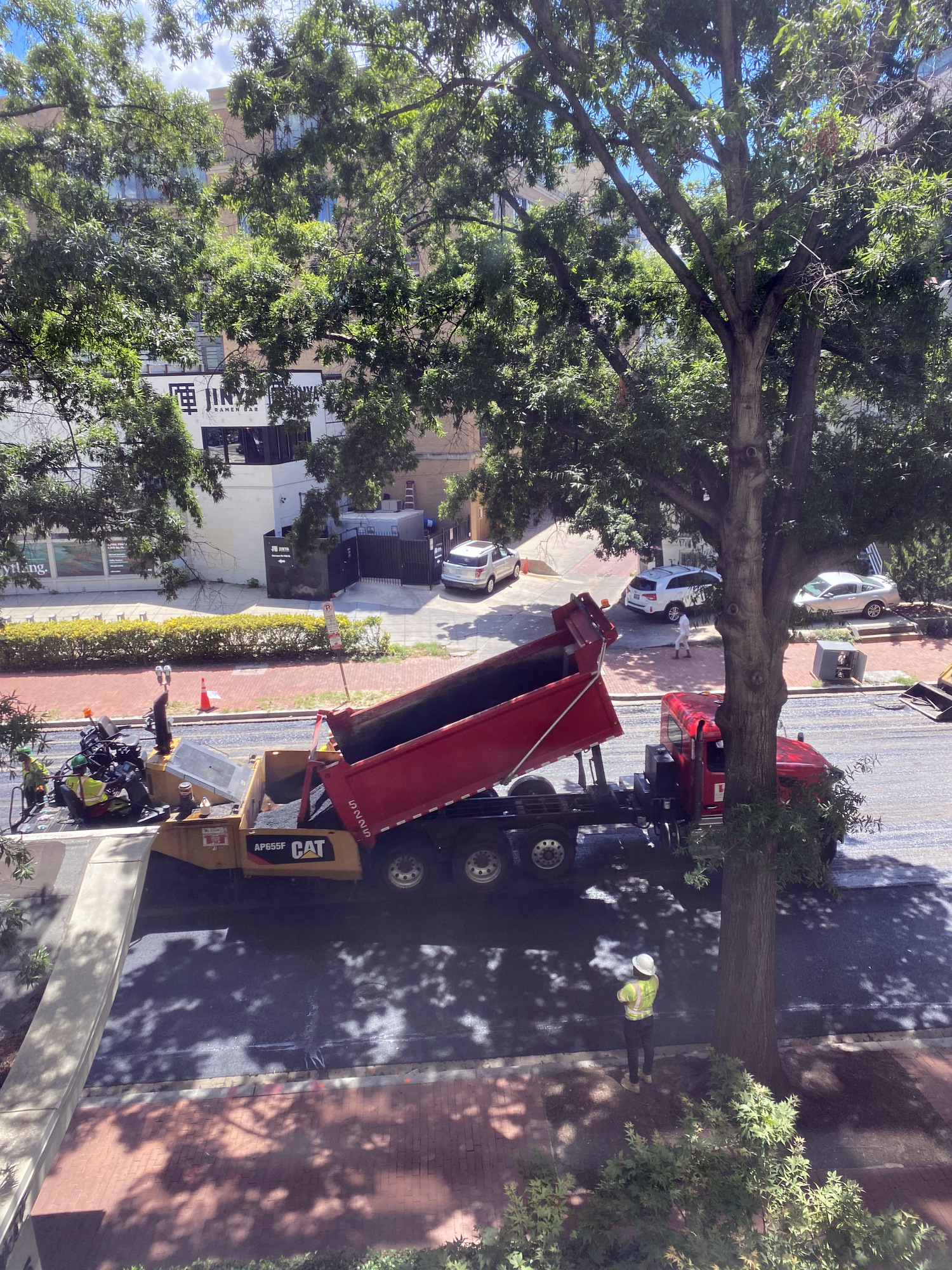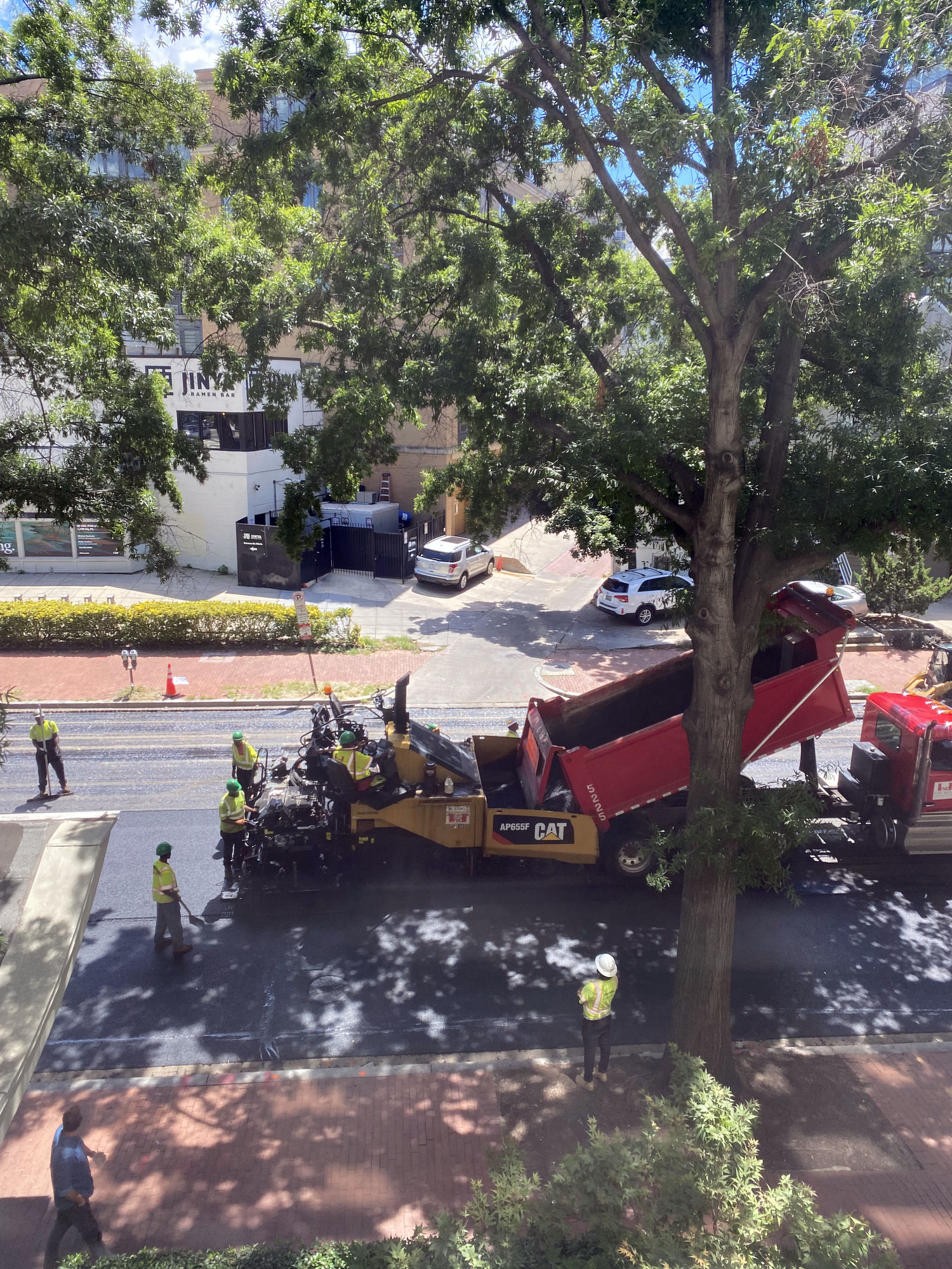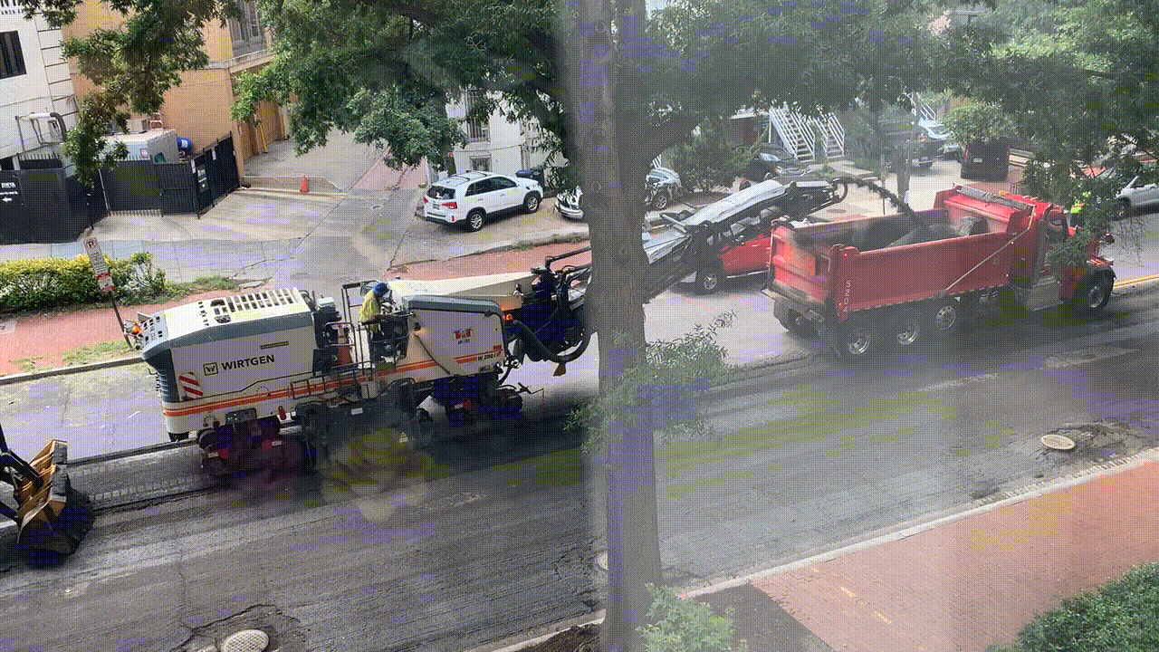 On Wed Aug 10, DC workers started to resurface Rhode Island Avenue NW in front of our building. They came VERY close to that Mercedes who ignored the temporary No Parking signs.