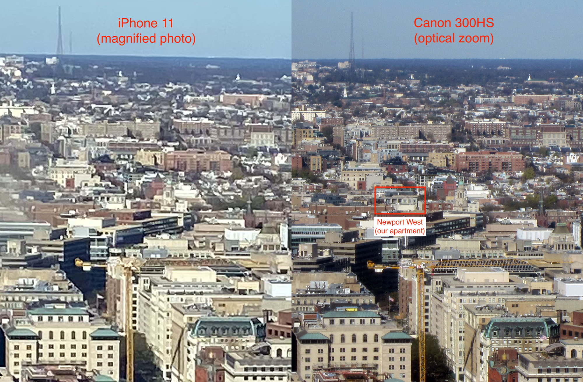 Or is it? The Canon has an optical zoom, so distant images are a bit clearer.