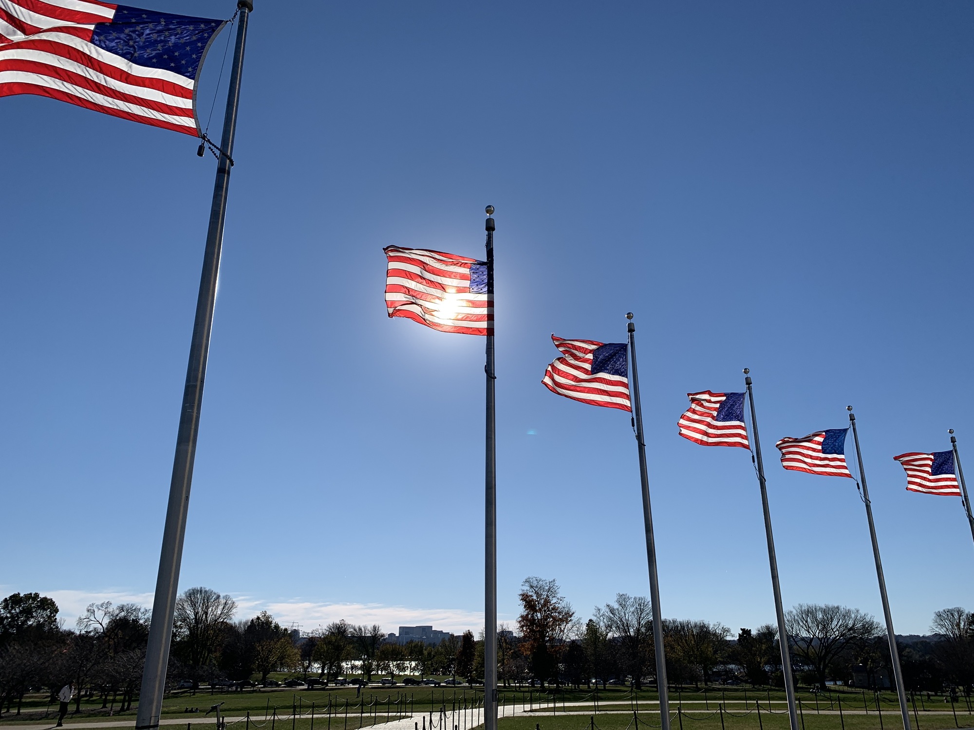 Flags around the monument. It was a very windy day.