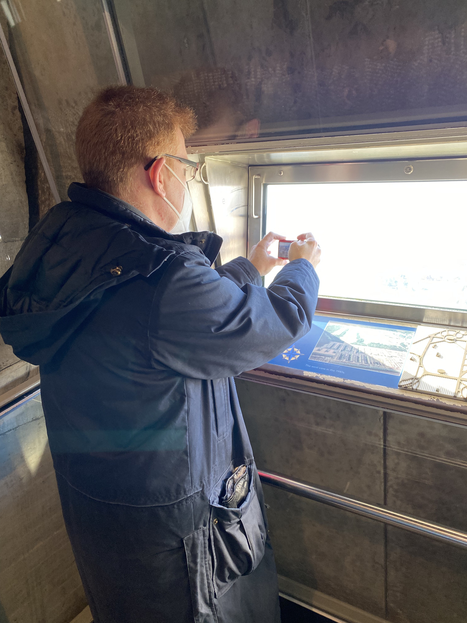 On the way down, the elevator slows and some panels become clear so you can see some of the commemorative blocks from cities, states and countries.