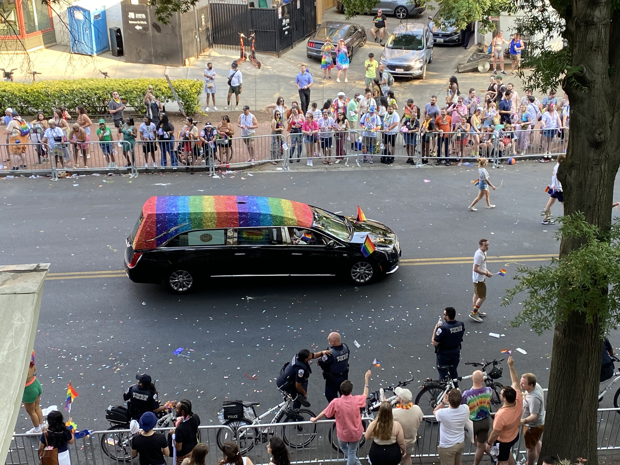 Across the street, they are having Pride party