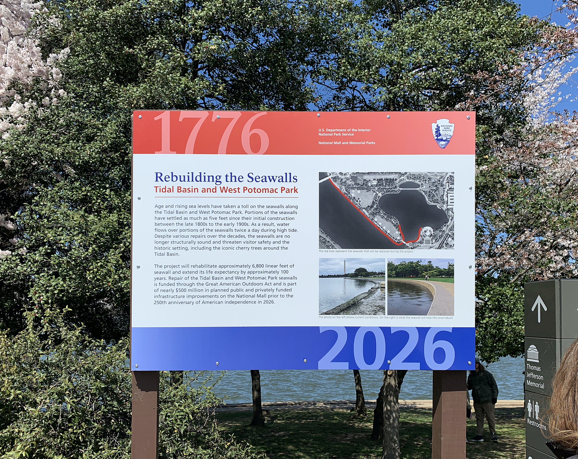 This is the part of the Tidal Basin where the seawall is failing. The trees all died because it floods twice a day.