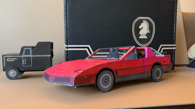 A gift needs a container. I built a replica of the FLAG Mobile Command Center fron Knight Rider using a cardboard box.
