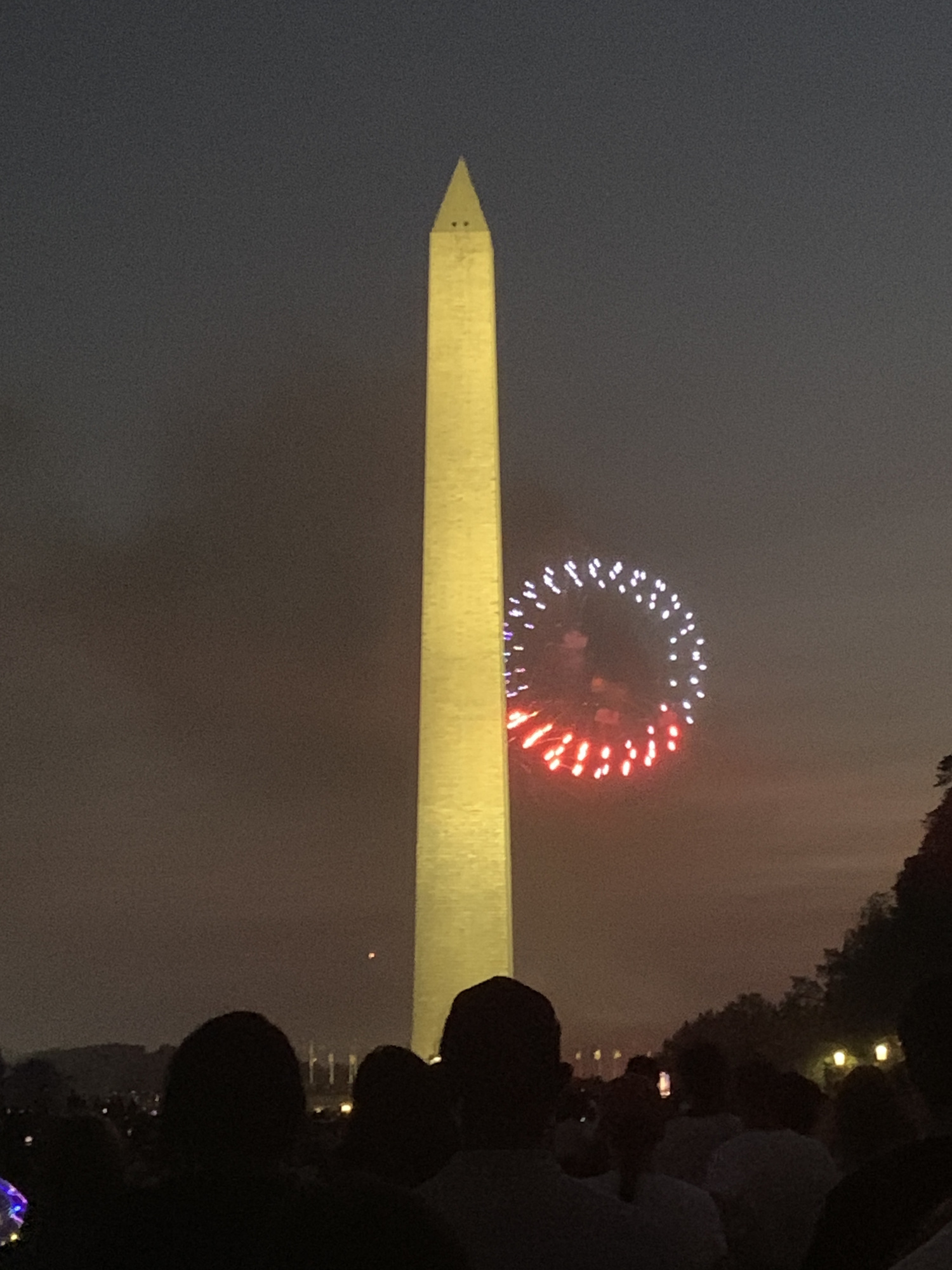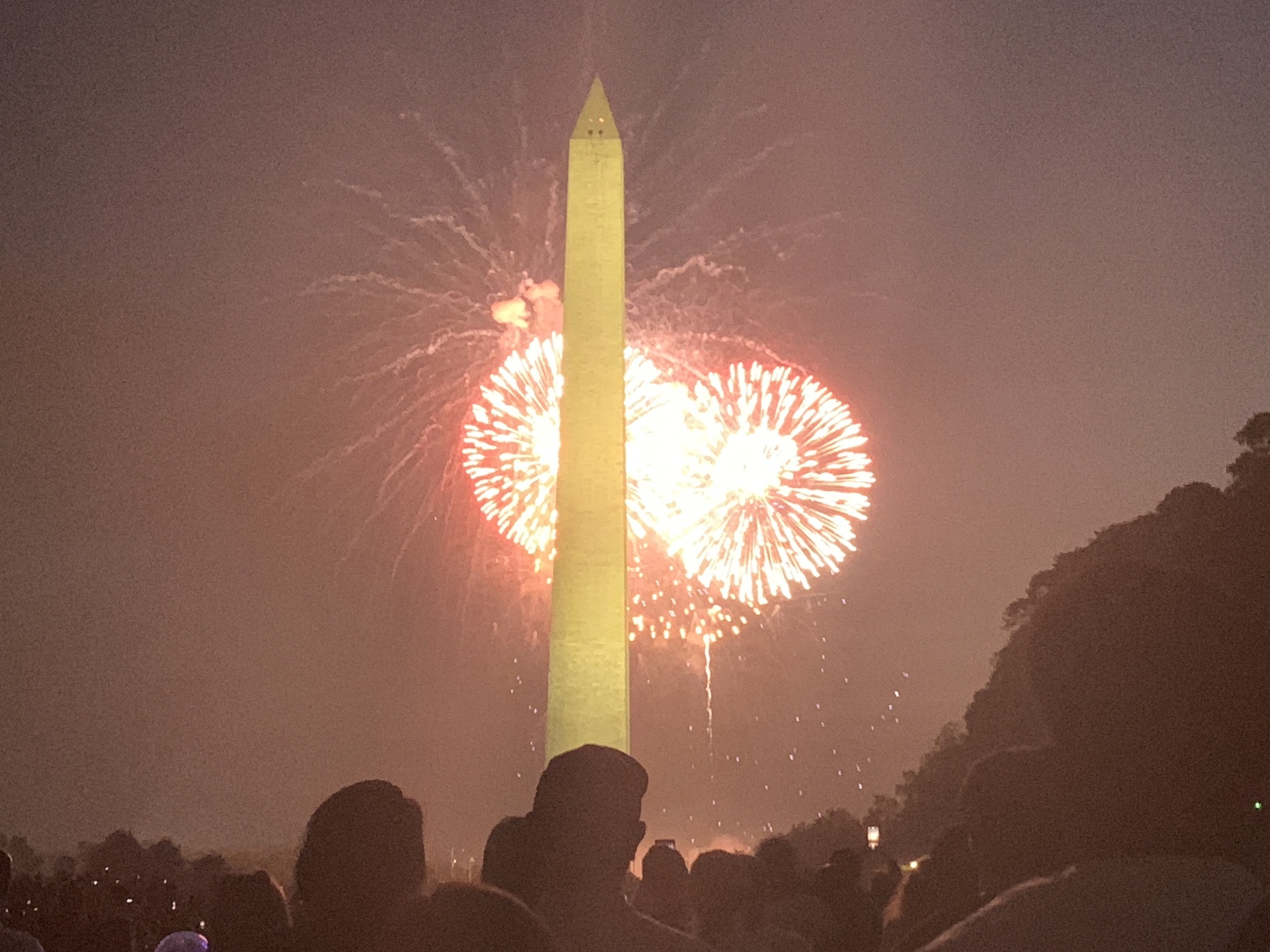 Capital in the haze. A section of new grass was blocked off for regrowth.