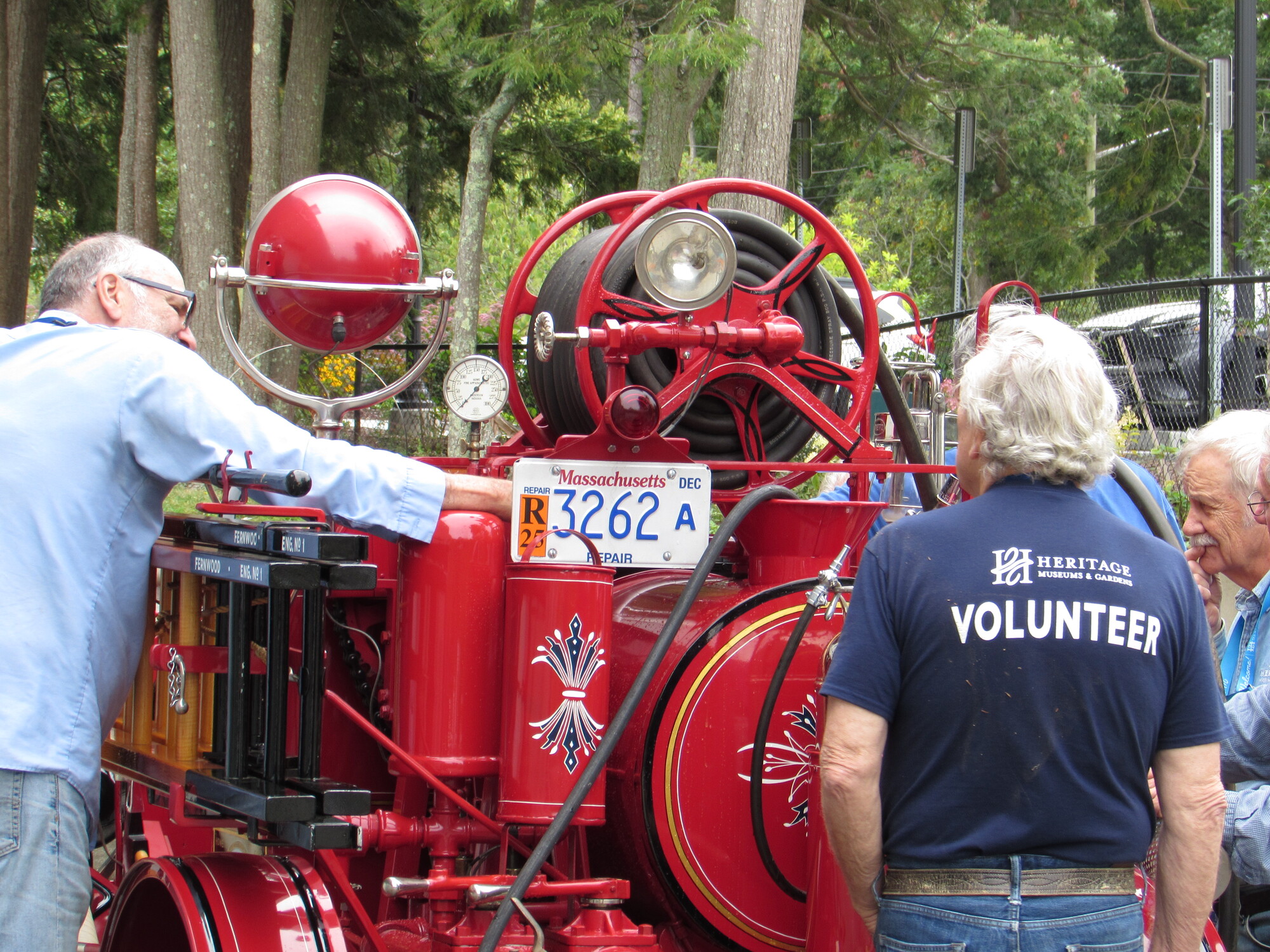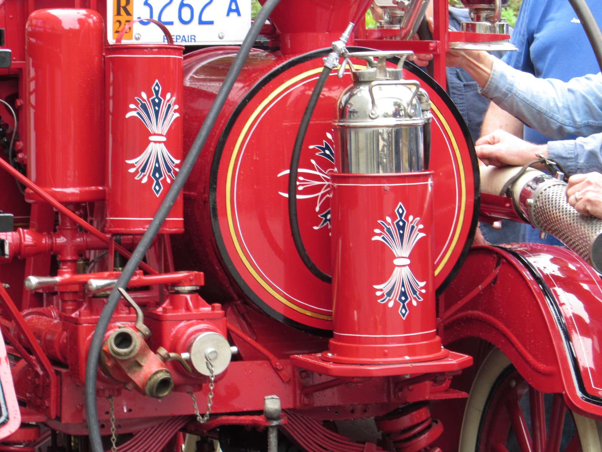 A team is working on getting this antique fire truck working again.